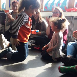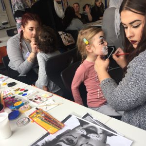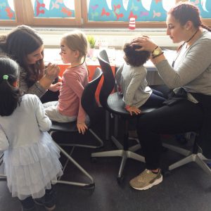 Über drei Stunden hatten die Kleinen Gelegenheit, zu tanzen, zu singen, zu spielen, zu toben, Schmuck herzustellen, sich schminken zu lassen und am Glücksrad zu drehen. Zwischendurch durften sich alle stärken: Obst, Gemüse, Nudeln mit Tomatensauce und Pudding – alles selbst von den Auszubildenden zubereitet und für lecker befunden.